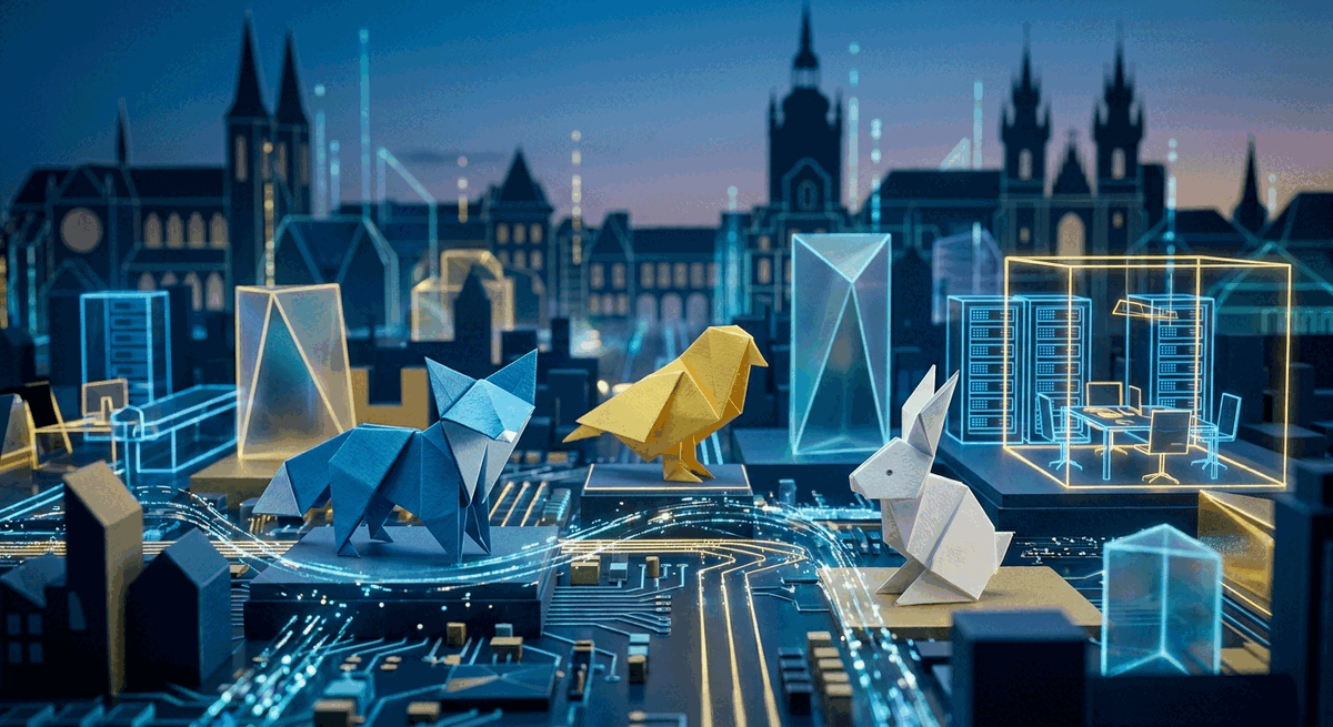 Origami-style startup illustration for SKY ENGINE AI in Warsaw